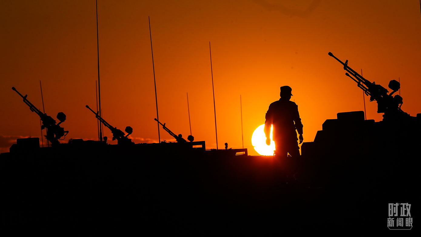 △2017年7月,士兵在晨曦中登上裝甲戰(zhàn)車,為慶祝中國(guó)人民解放軍建軍90周年朱日和大閱兵做最后的準(zhǔn)備。(總臺(tái)國(guó)廣記者李晉拍攝)