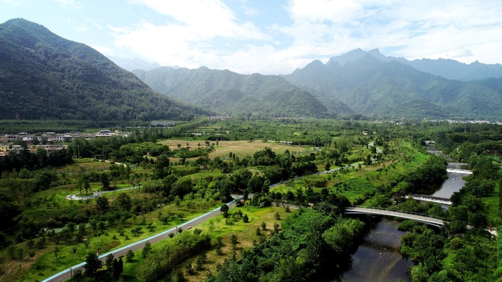 這是陜西省西安市長(zhǎng)安區(qū)秦嶺違建別墅“群賢別業(yè)”拆除后建設(shè)的秦嶺和諧森林公園(2019年7月26日攝,無(wú)人機(jī)照片)。新華社記者 劉瀟 攝