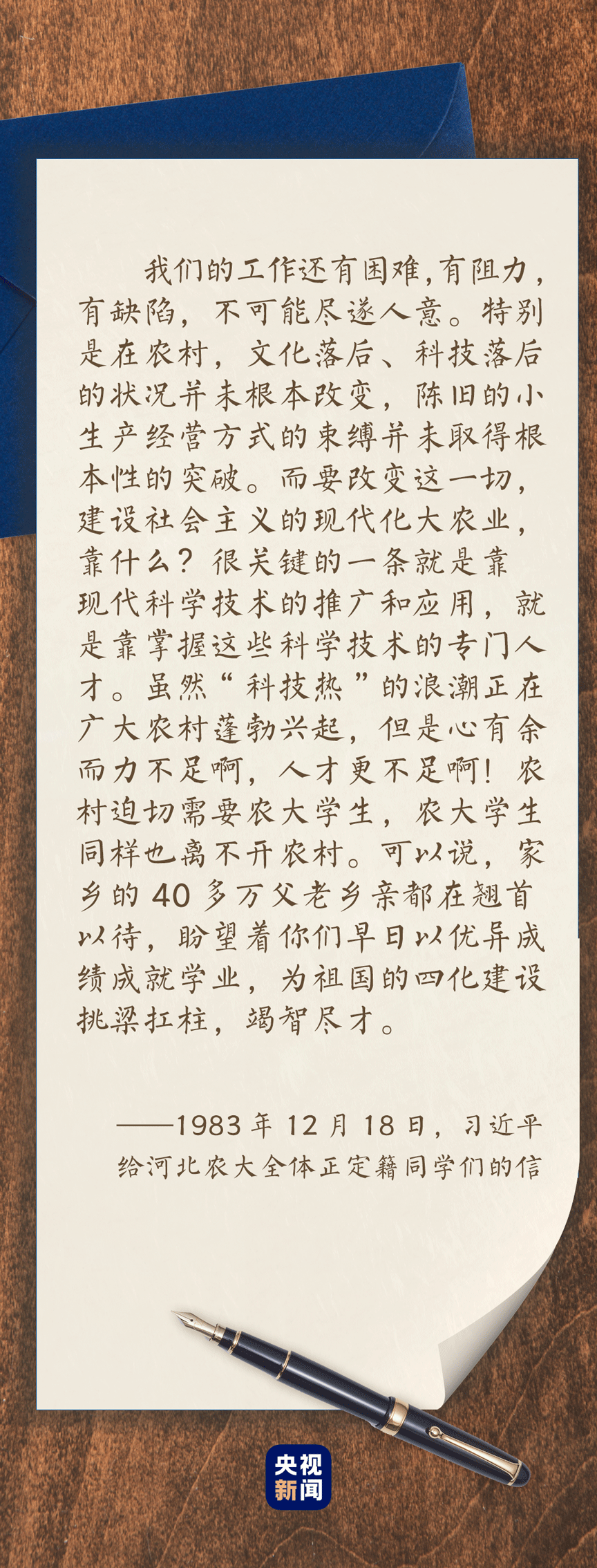1983年12月,時(shí)任正定縣委書記的習(xí)近平給河北農(nóng)業(yè)大學(xué)正定籍學(xué)生寫了一封信。