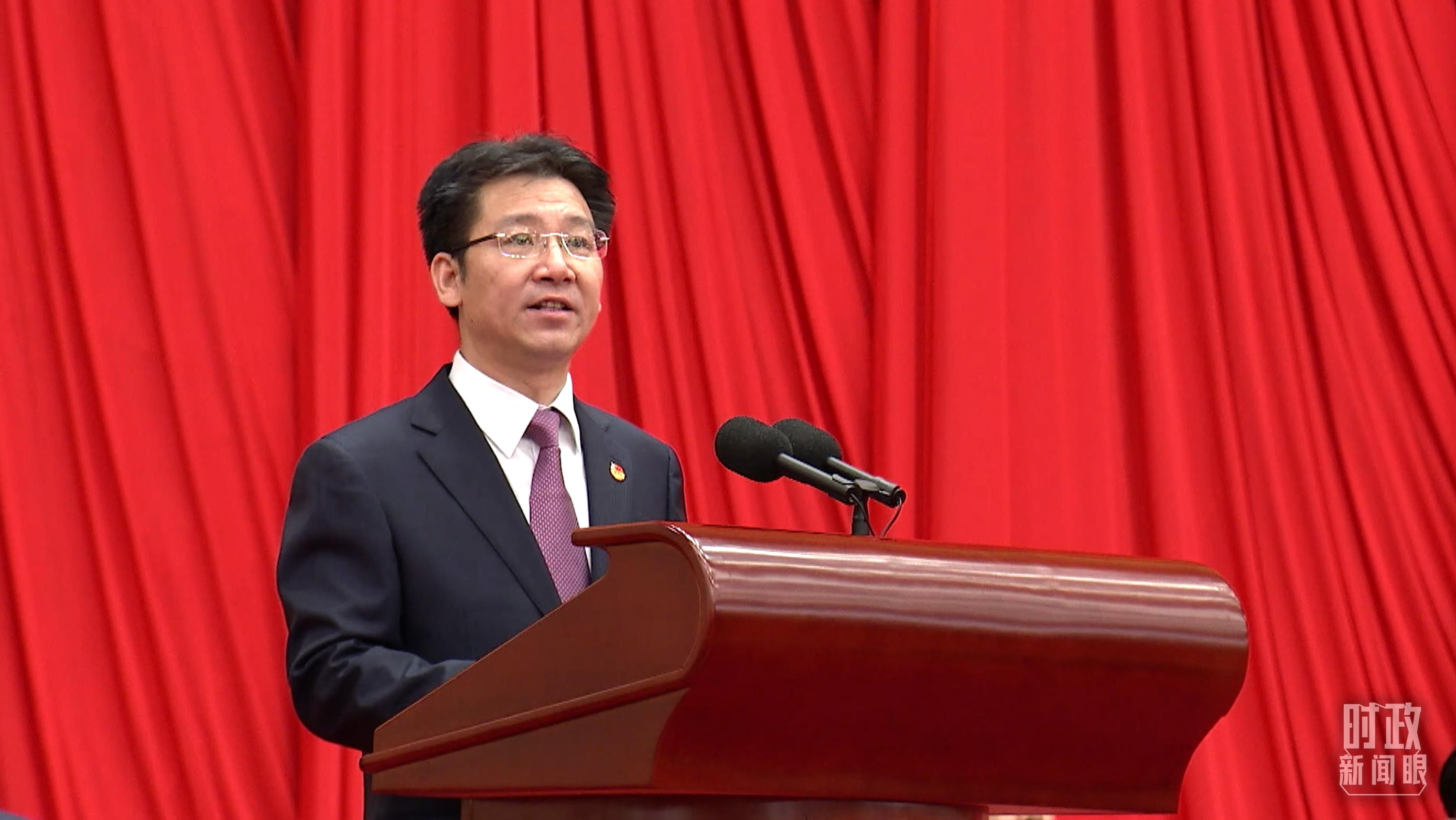 △共青團中央書記處第一書記賀軍科在大會上發(fā)言。(總臺央視記者 張曉鵬拍攝)