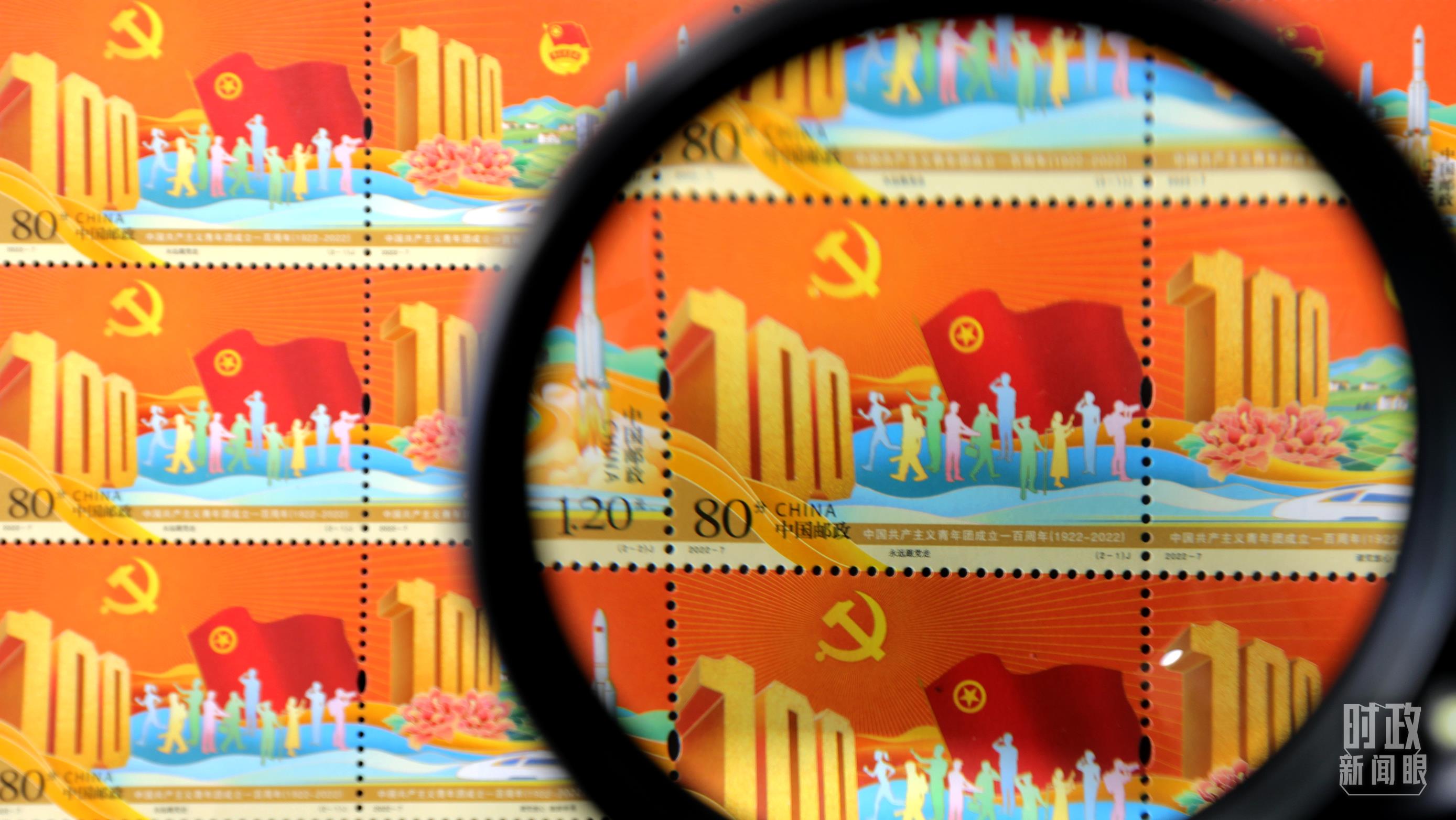 △2022年5月,中國郵政發(fā)行《中國共產(chǎn)主義青年團成立一百周年》紀念郵票。(圖丨視覺中國)