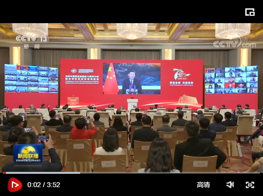 5月18日,國家主席習近平在慶祝中國國際貿易促進委員會建會70周年大會暨全球貿易投資促進峰會上發(fā)表視頻致辭。
