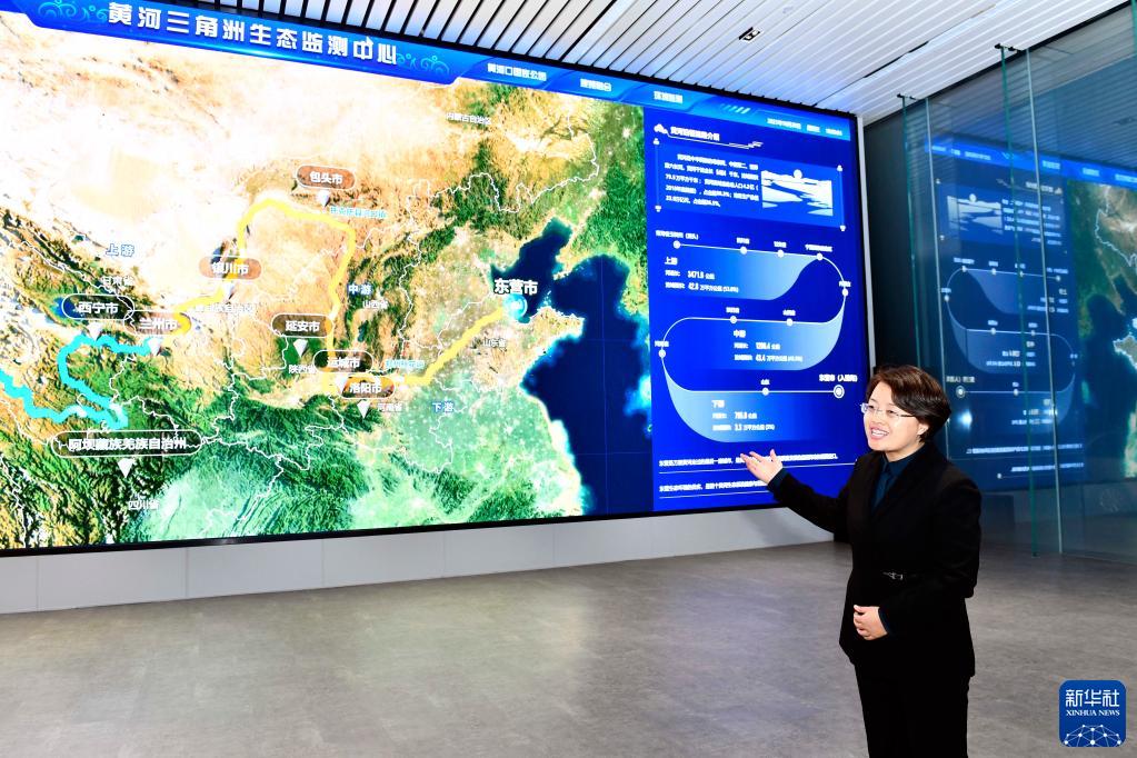 山東黃河三角洲國家級自然保護區(qū)生態(tài)監(jiān)測中心主任劉靜在介紹相關(guān)情況(2021年10月20日攝)。新華社記者郭緒雷攝