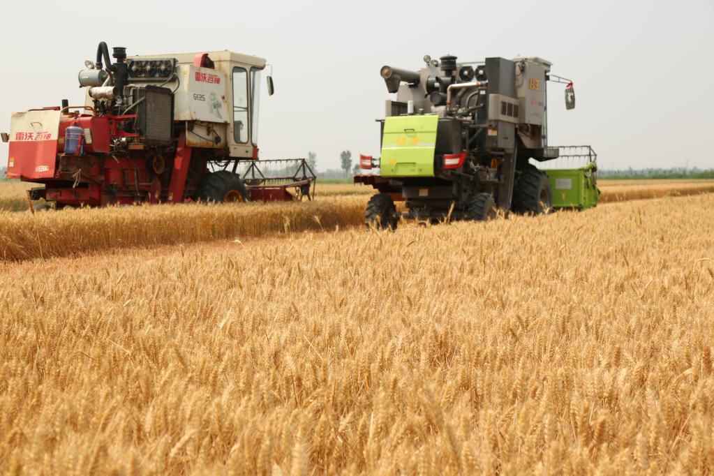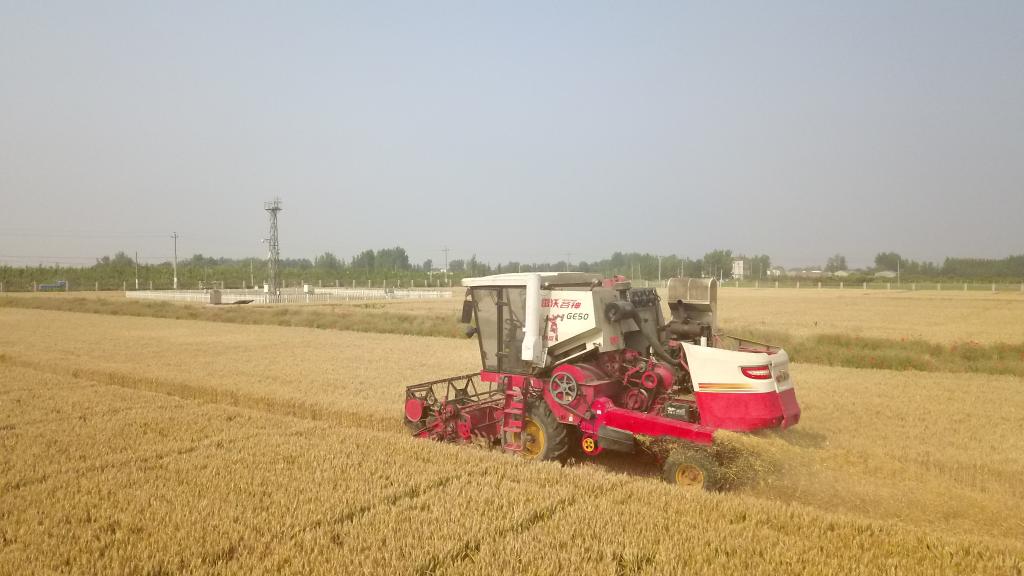 圖為在南皮縣,收割機(jī)正在收割小麥。(受訪者供圖)