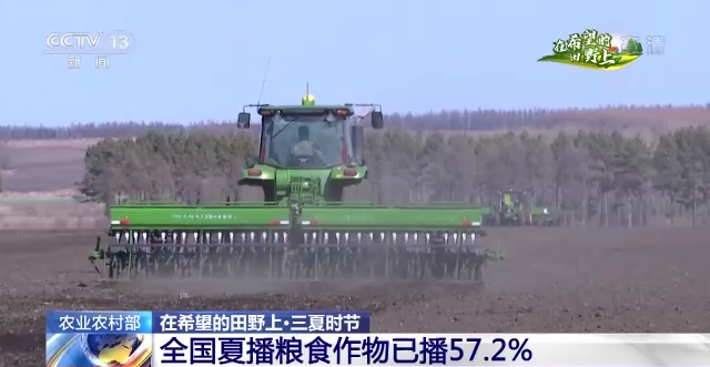 農(nóng)業(yè)農(nóng)村部最新農(nóng)情調(diào)度顯示,全國(guó)夏播糧食作物已播57.2%,其中中稻栽插六成半、夏玉米播種五成半、夏大豆播種過四成。