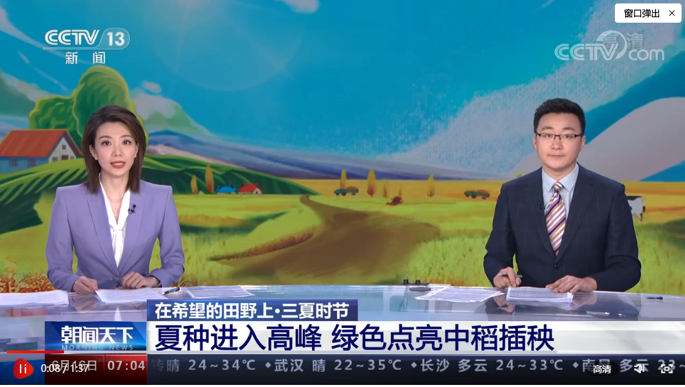 農(nóng)業(yè)農(nóng)村部最新農(nóng)情調(diào)度顯示,全國夏播糧食作物已播57.2%。其中,中稻栽插六成半,夏玉米播種五成半,夏大豆播種過四成。