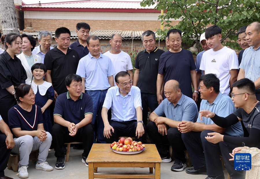 6月21日,中共中央政治局常委、國務院總理李克強在河北高碑店、涿州考察。這是李克強來到高碑店大鋪村,察看晾曬的小麥后,與村民圍坐交談。 新華社記者 劉衛(wèi)兵 攝
