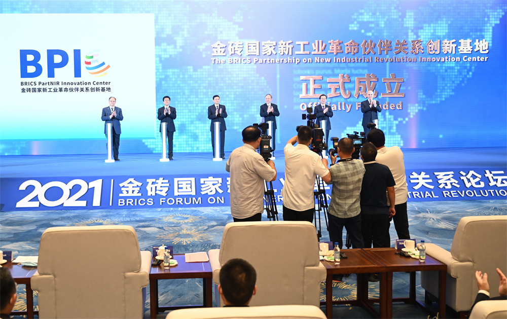 2021年9月7日,金磚國家新工業(yè)革命伙伴關(guān)系創(chuàng)新基地在廈門揭牌。新華社記者 林善傳 攝