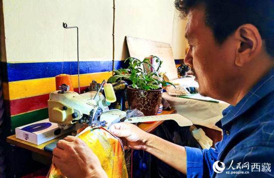 米瑪格列正在縫制藏裝。人民網(wǎng) 李海霞攝