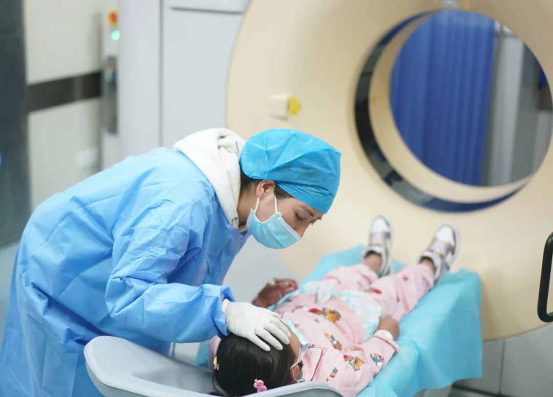 2022年5月12日,南醫(yī)大二附院護(hù)士安慰準(zhǔn)備接受檢查的小患者 季春鵬攝 / 本刊
