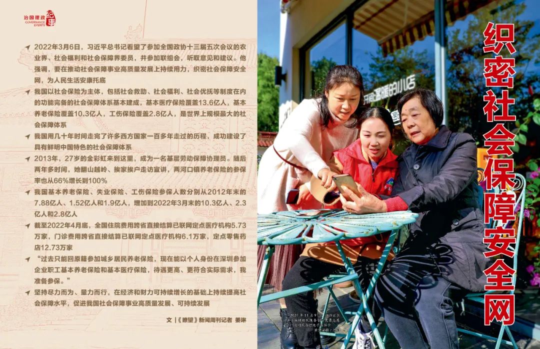 ◆ 2022年3月6日,習(xí)近平總書記看望了參加全國政協(xié)十三屆五次會議的農(nóng)業(yè)界、社會福利和社會保障界委員,并參加聯(lián)組會,聽取意見和建議。他強(qiáng)調(diào),要在推動社會保障事業(yè)高質(zhì)量發(fā)展上持續(xù)用力,織密社會保障安全網(wǎng),為人民生活安康托底