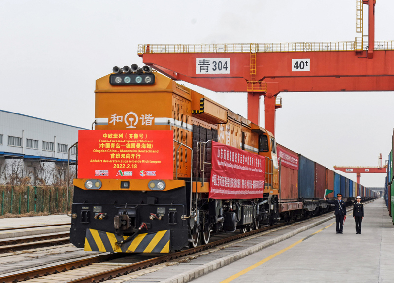 2022年2月18日,中歐班列(齊魯號(hào))中國(guó)青島—德國(guó)曼海姆雙向?qū)﹂_(kāi)首班列車從上合示范區(qū)青島多式聯(lián)運(yùn)中心出發(fā)。