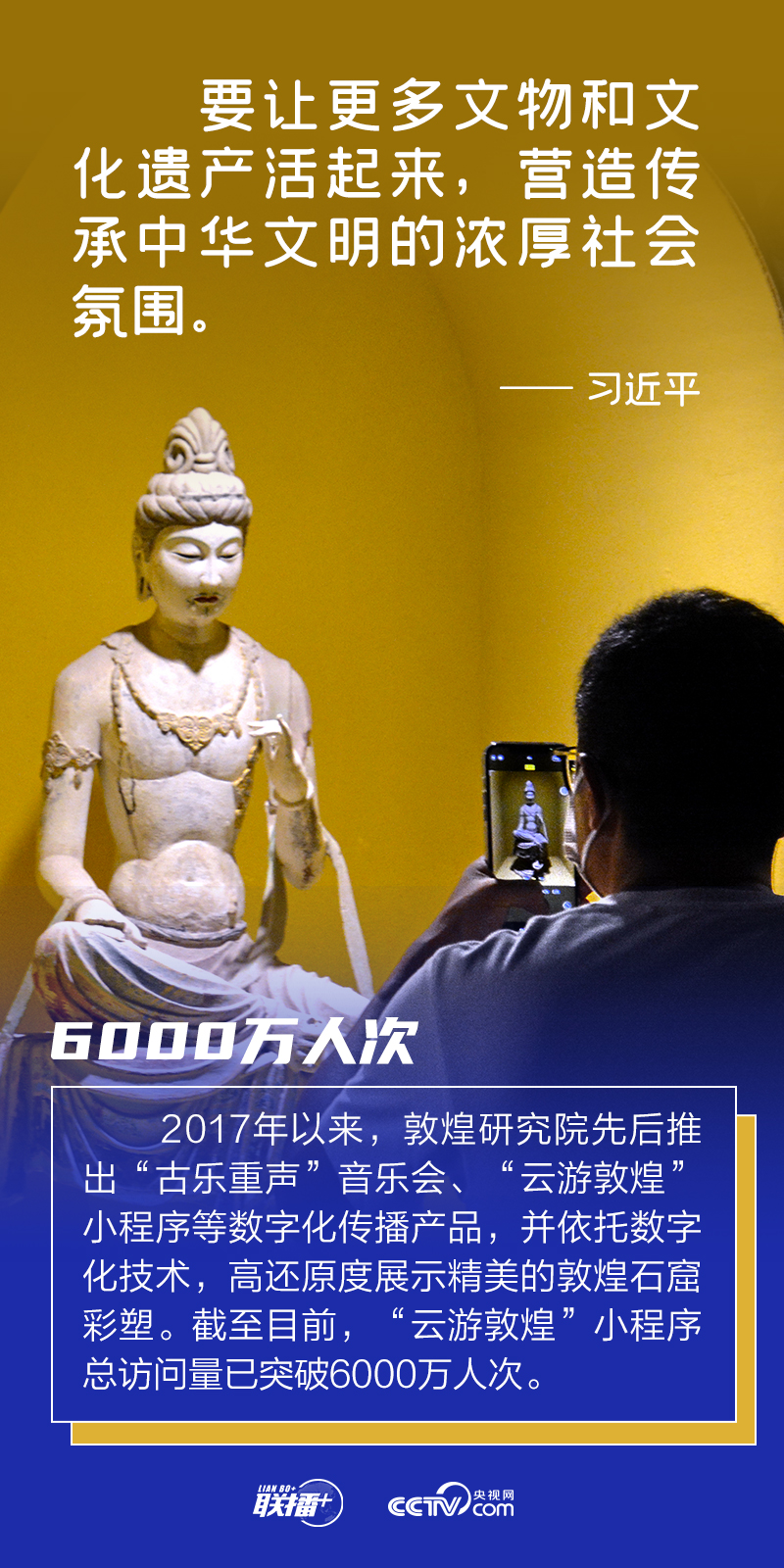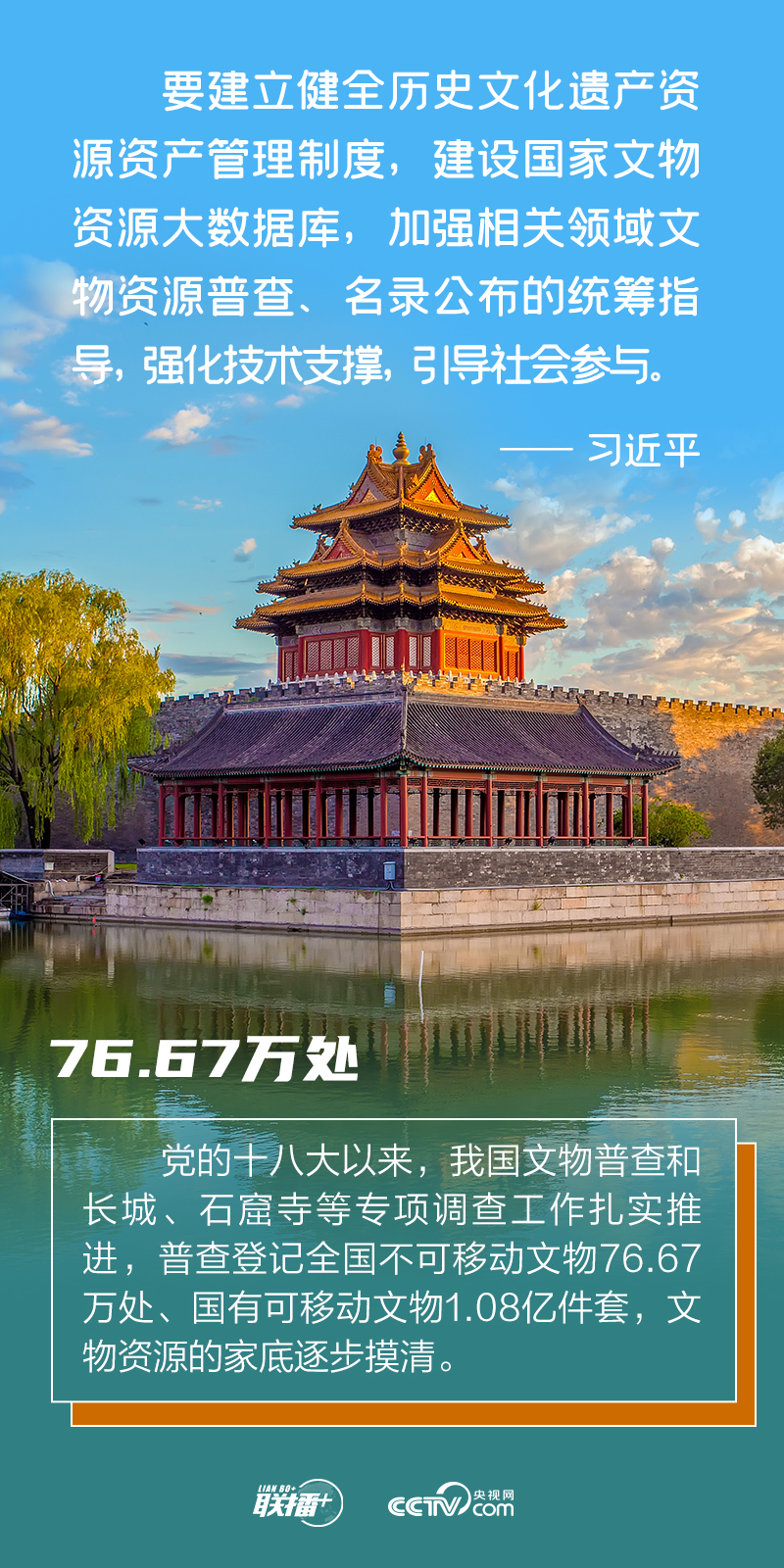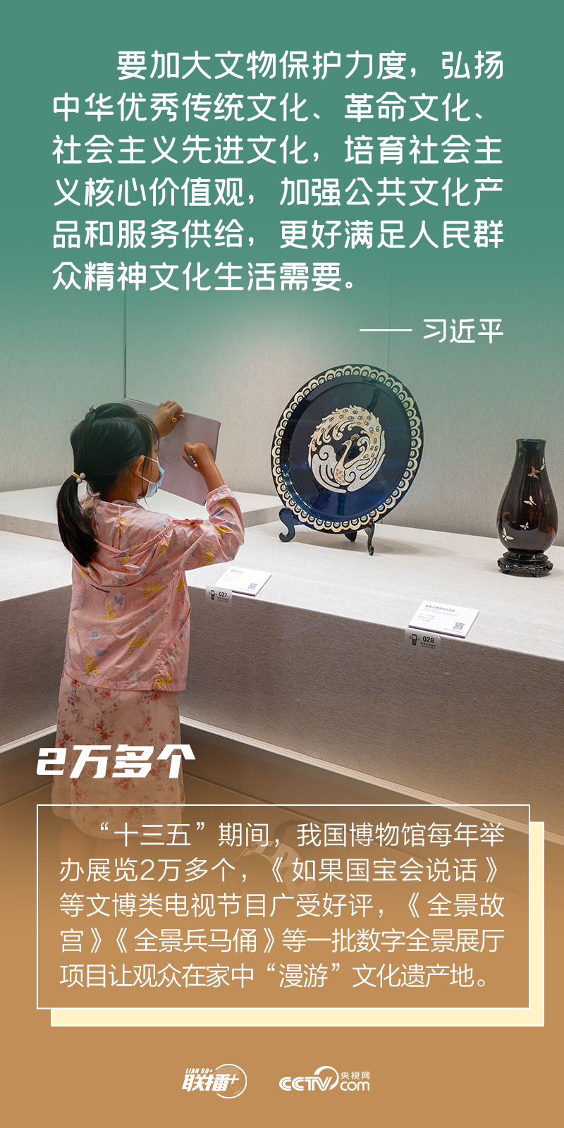 聯(lián)播+“文物和文化遺產(chǎn)承載著中華民族的基因和血脈,是不可再生、不可替代的中華優(yōu)秀文明資源。要讓更多文物和文化遺產(chǎn)活起來(lái),營(yíng)造傳承中華文明的濃厚社會(huì)氛圍。”