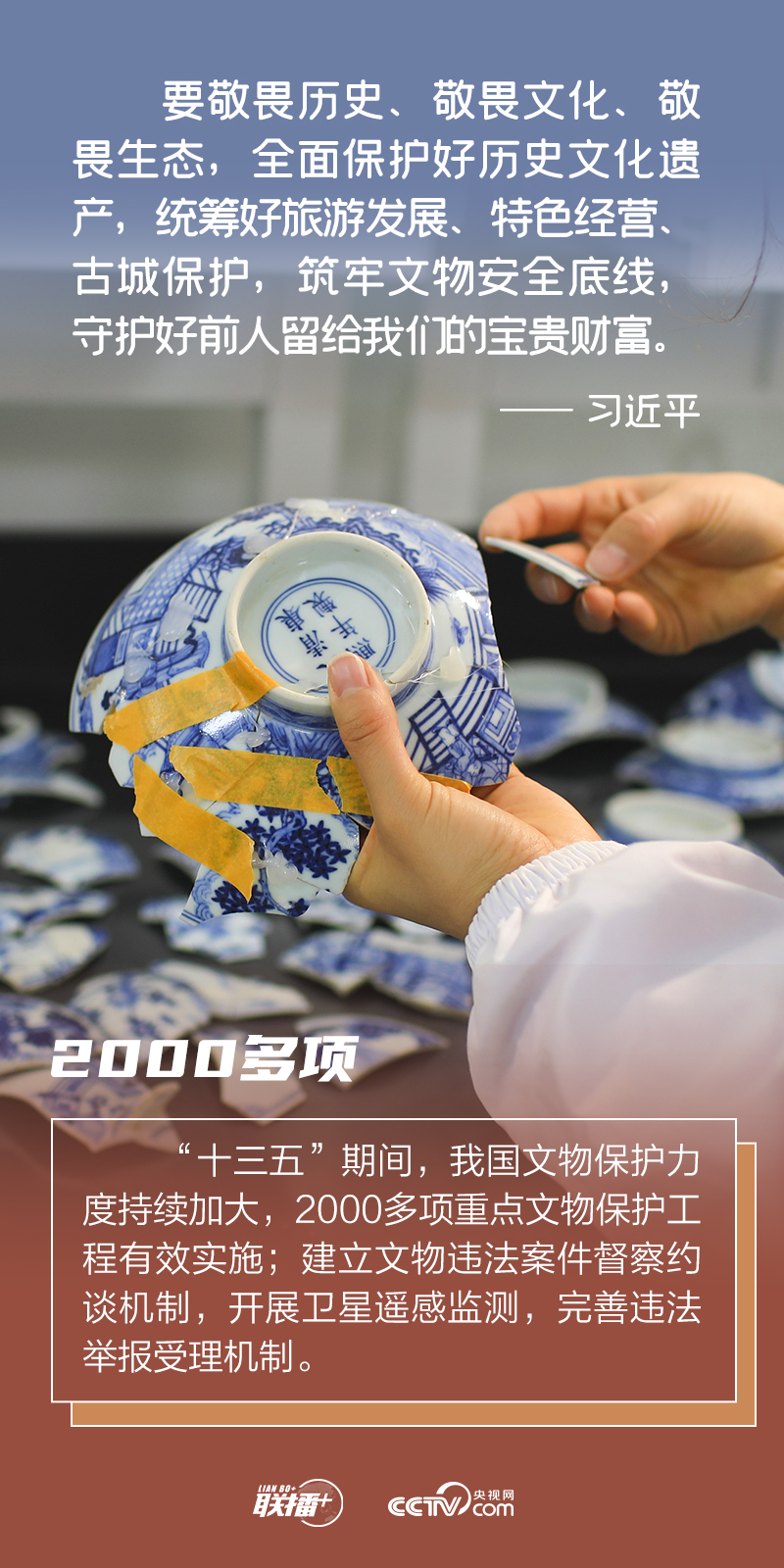 一直以來(lái),習(xí)近平總書記高度重視文物和文化遺產(chǎn)保護(hù)工作,曾在不同場(chǎng)合多次對(duì)文物和文化遺產(chǎn)保護(hù)工作作出重要指示。央視網(wǎng)《聯(lián)播+》“數(shù)說(shuō)新時(shí)代”系列特推出創(chuàng)意海報(bào),以饗讀者。