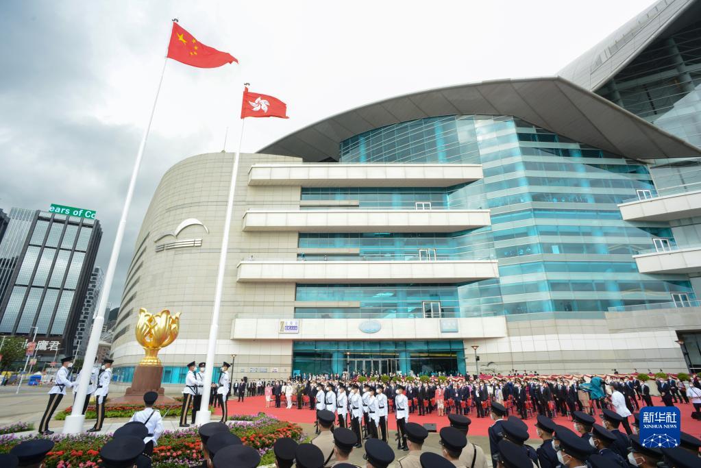 2022年7月1日,香港特區(qū)政府在金紫荊廣場舉行升旗儀式,慶祝香港回歸祖國25周年。新華社發(fā)