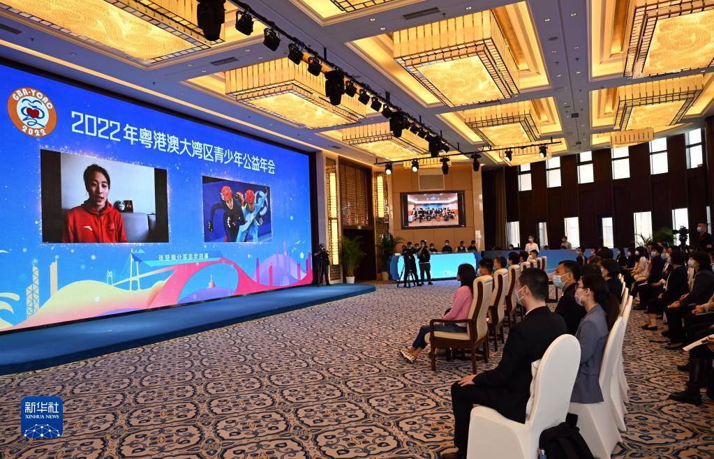 2022年4月23日,在由中國宋慶齡基金會聯(lián)合廣東省宋慶齡基金會、香港洛士文基金、澳門基金會共同舉辦的2022年粵港澳大灣區(qū)青少年公益年會啟動儀式上,2022年北京冬奧會季軍張楚桐在進(jìn)行視頻發(fā)言。新華社記者 金良快 攝