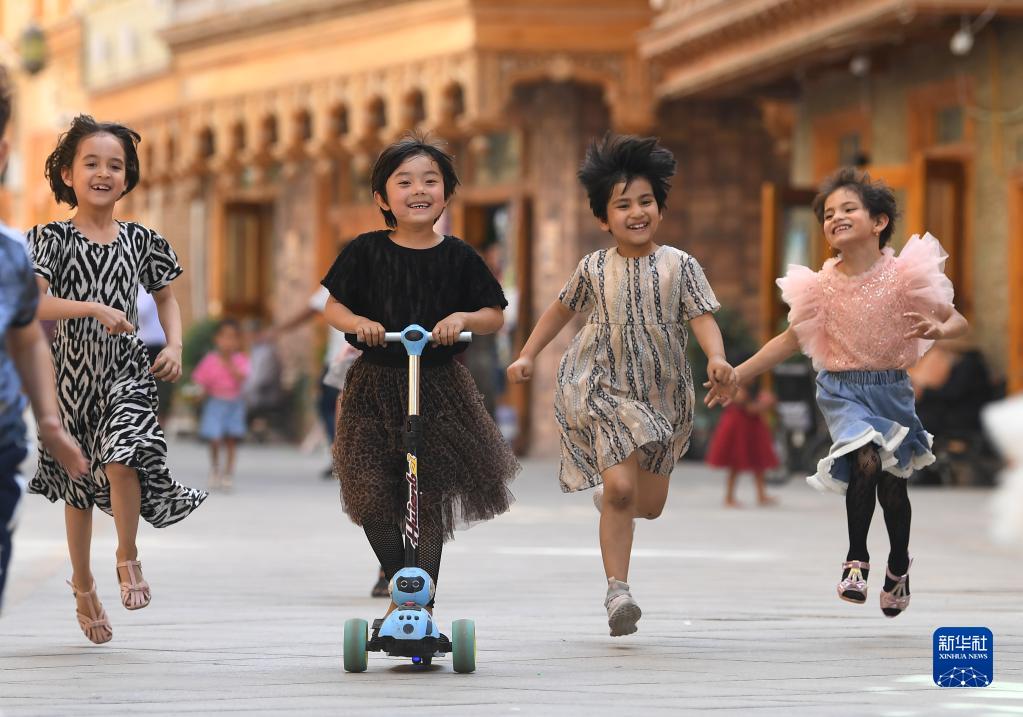 2020年5月27日,孩子們在新疆和田市團城的鴿子巷玩耍。新華社記者 沙達(dá)提 攝