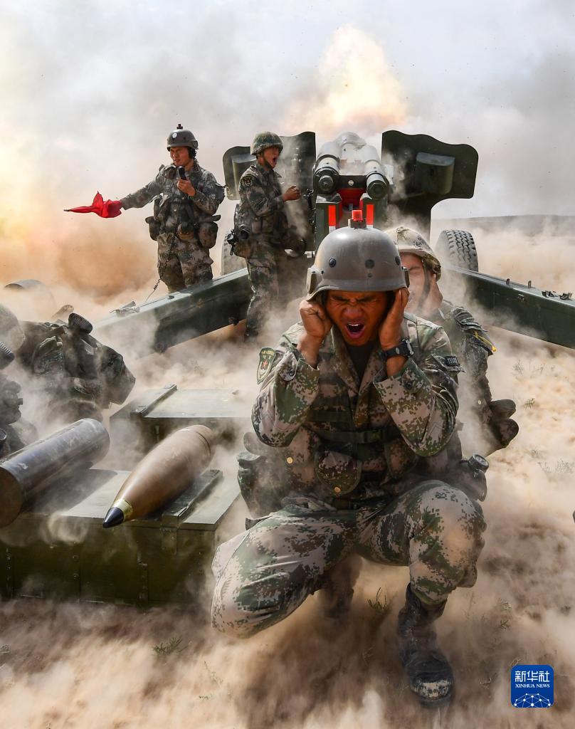 “火力-2017·青銅峽”基地化訓(xùn)練中,紅軍參演炮兵部隊(duì)——第71集團(tuán)軍某炮兵旅加榴炮進(jìn)行晝間實(shí)彈射擊(2017年9月24日攝)。新華社發(fā)(彭希 攝)