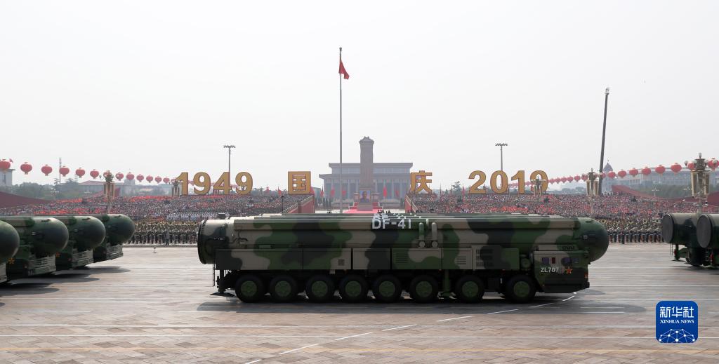 2019年10月1日上午,慶祝中華人民共和國(guó)成立70周年大會(huì)在北京天安門(mén)廣場(chǎng)隆重舉行。這是東風(fēng)-41核導(dǎo)彈方隊(duì)通過(guò)天安門(mén)廣場(chǎng)。新華社記者 袁滿(mǎn) 攝