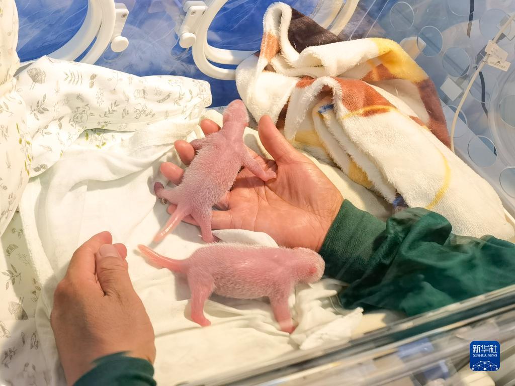 這是8月4日拍攝的海歸大熊貓“二順”產(chǎn)下的大熊貓雙胞胎幼仔。新華社發(fā)(重慶動(dòng)物園供圖)