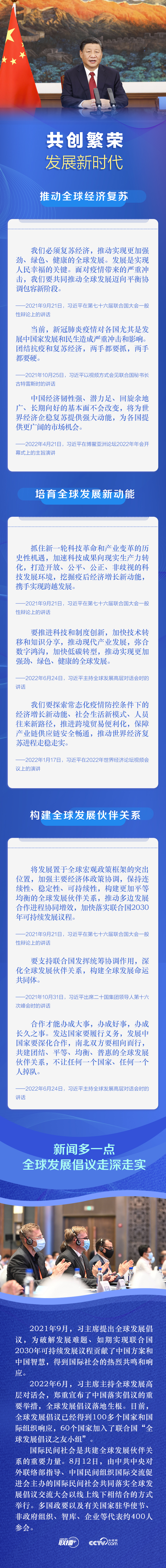 8月12日,習(xí)近平主席向國際民間社會共同落實全球發(fā)展倡議交流大會致賀信,深刻闡述了發(fā)展的重要意義。習(xí)主席呼吁“國際社會應(yīng)不斷凝聚促進發(fā)展的強大共識,努力營造有利于發(fā)展的國際環(huán)境”,并再次表明中國愿同各方攜手努力謀發(fā)展的誠意和決心。