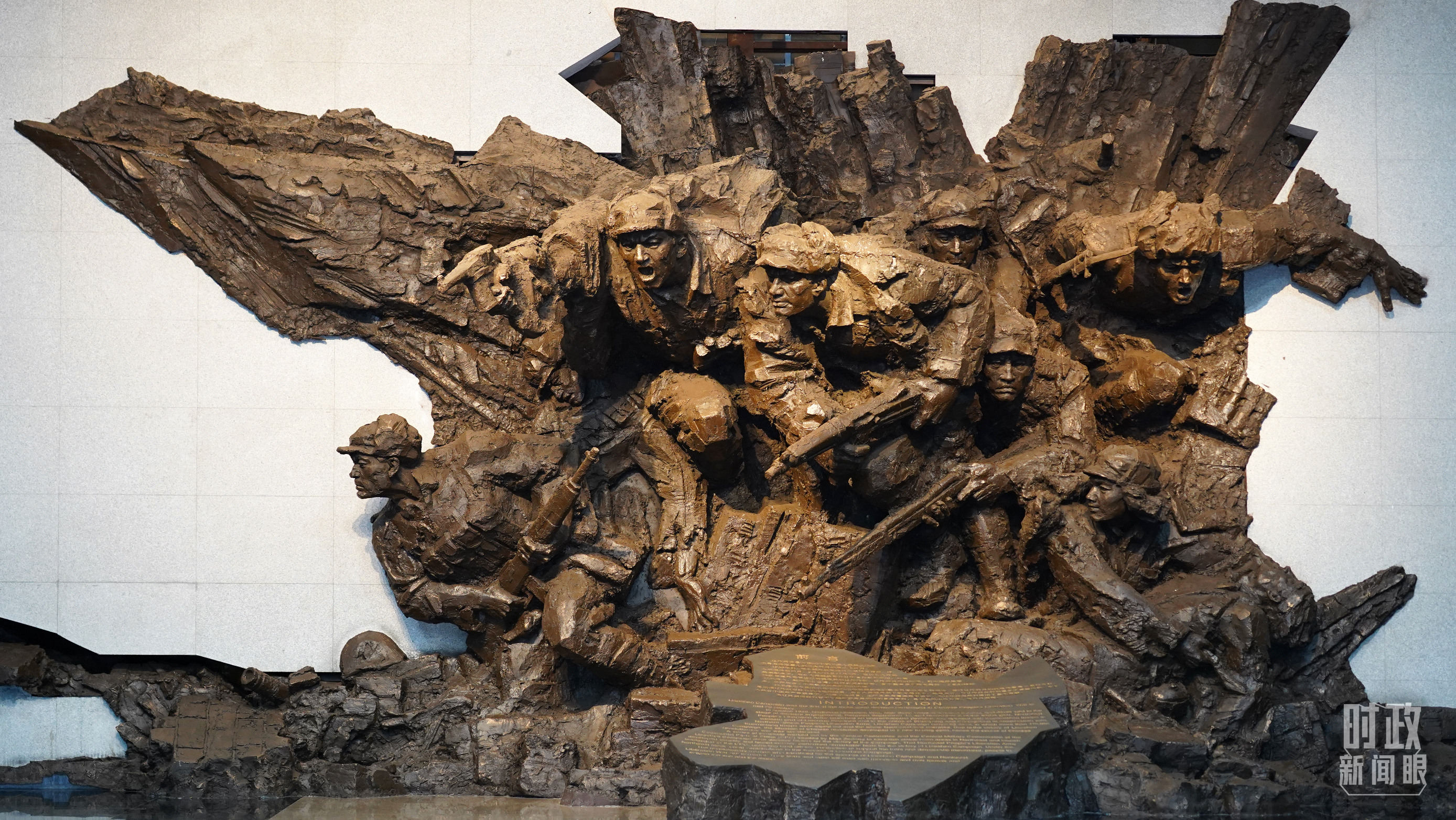 步入序廳,迎面是名為“決戰(zhàn)決勝”的大型浮雕,展現(xiàn)的是沖鋒戰(zhàn)士冒著炮火奮勇向前。