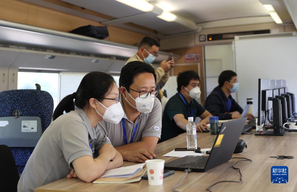 8月23日,工作人員在彌蒙高鐵綜合檢測車內(nèi)工作。新華社發(fā)(何呂鵬 攝)