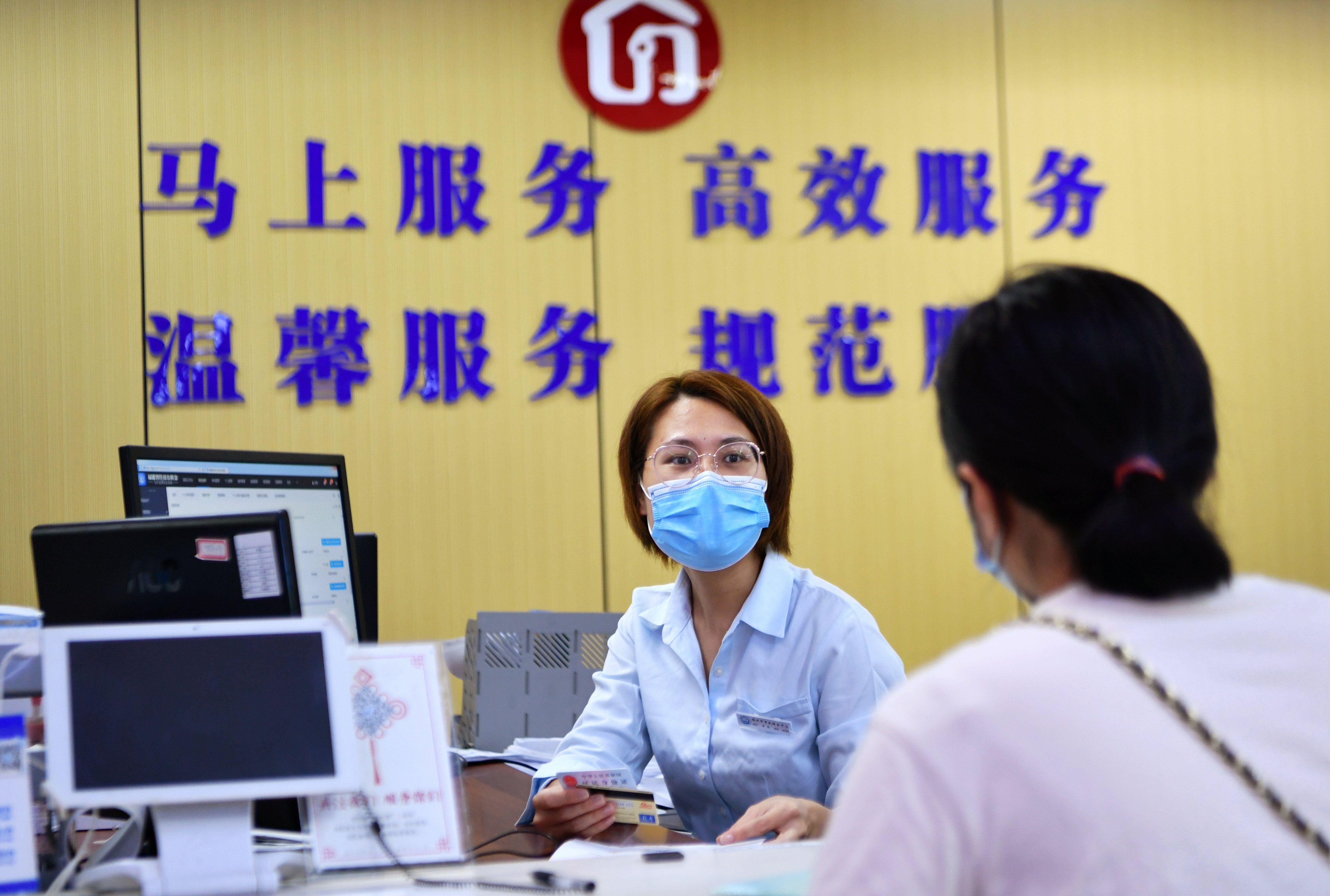 2020年7月15日,在福州市市民服務(wù)中心,市民(右)在辦理住房公積金提取手續(xù)。新華社記者 魏培全 攝