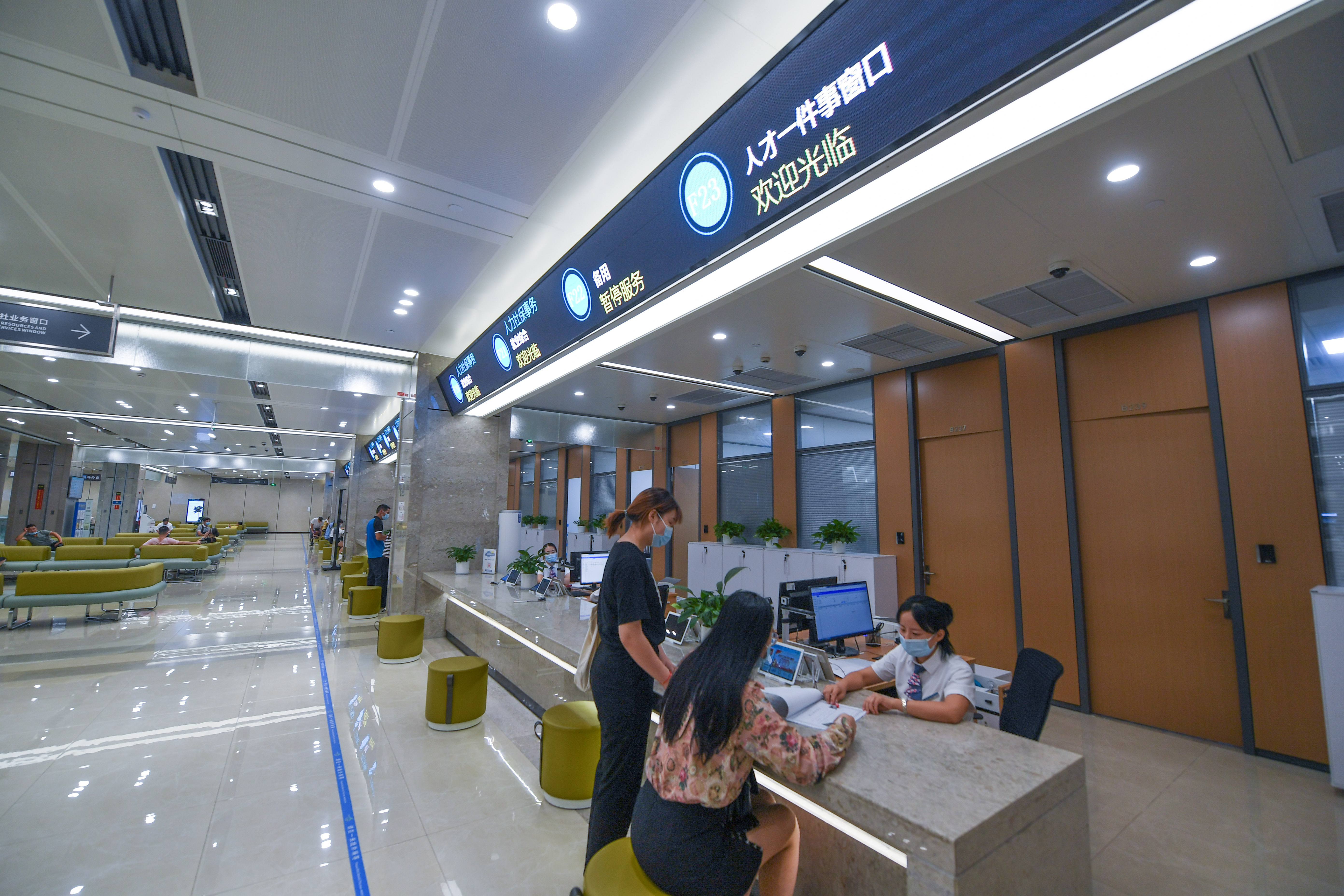 2021年9月29日,市民在杭州臨安區(qū)行政服務(wù)中心的“人才一件事”窗口辦理人才分類(lèi)認(rèn)定。新華社記者 徐昱 攝
