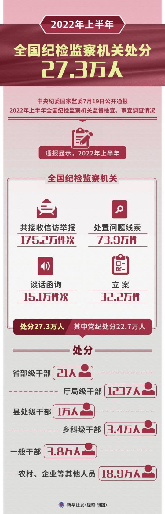 數(shù)據(jù)顯示,黨的十八大以來,截至2022年4月底,全國紀(jì)檢監(jiān)察機(jī)關(guān)共查處違反中央八項規(guī)定精神問題72.3萬起,給予黨紀(jì)政務(wù)處分64.4萬人。