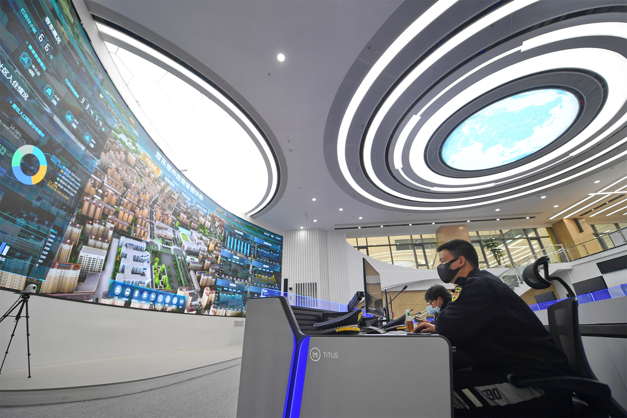 2022年3月29日,工作人員在雄安新區(qū)容東城市運營管理中心監(jiān)管平臺工作。新華社記者 朱旭東 攝