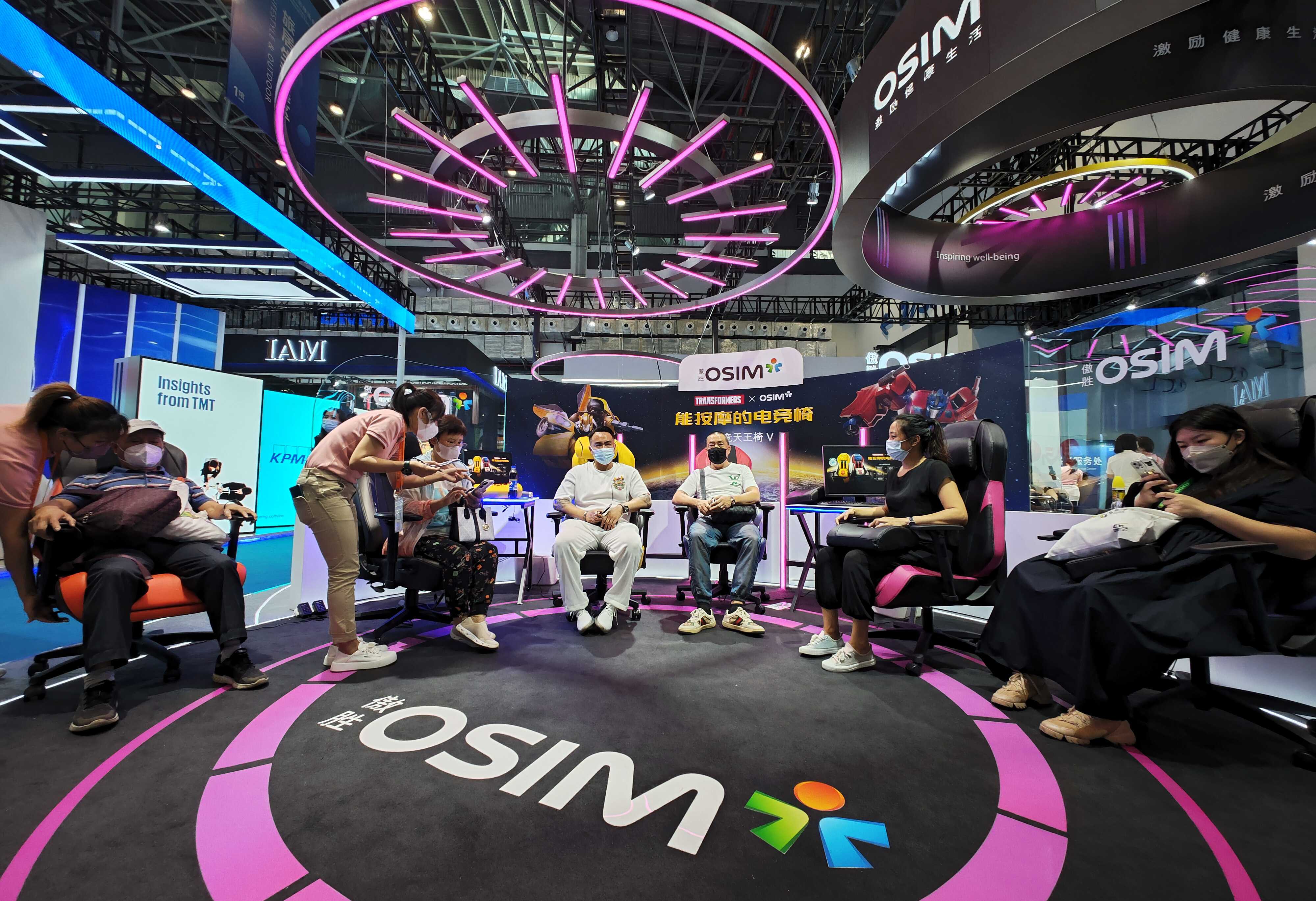 觀眾在第二屆中國(guó)國(guó)際消費(fèi)品博覽會(huì)上體驗(yàn)按摩電競(jìng)椅(2022年7月28日攝)。新華社記者 郭程 攝