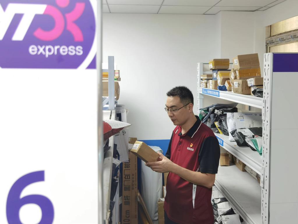 馬石光在圓通速遞服務(wù)有限公司湖南省長沙市高橋分公司營運(yùn)部分揀包裹(2022年9月28日攝)。新華社發(fā)