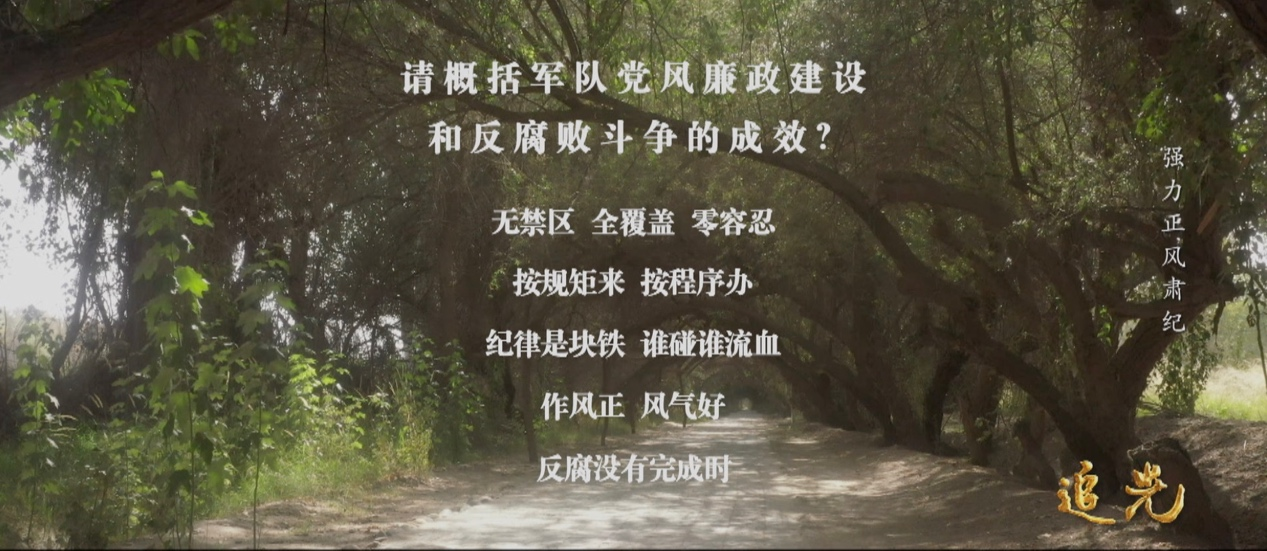 黨的十八大以來,習(xí)主席和中央軍委堅持有腐必反、有貪必肅,堅決查處郭伯雄、徐才厚、房峰輝、張陽等嚴(yán)重違紀(jì)違法案件并徹底肅清其流毒影響,積極構(gòu)建權(quán)力運行制約和監(jiān)督體系,大力糾治發(fā)生在官兵身邊的腐敗和不正之風(fēng),黨風(fēng)廉政建設(shè)和反腐敗斗爭取得歷史性成就。