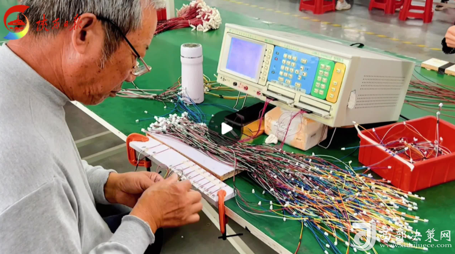 9月27日,譚壩鎮(zhèn)松壩社區(qū)。在安康歐利科精密電子科技有限公司新社區(qū)工廠寬敞明亮的車(chē)間里,工人們正熟練地進(jìn)行著電子線束生產(chǎn)流程的各項(xiàng)工作,隨處可見(jiàn)紅綠黃黑各種顏色的電子線束。隨著檢測(cè)設(shè)備顯示“良品”,一根根連接合格的電子線束“奔”向下一道工序。