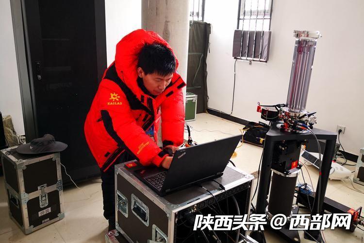 趙丕正在操作測量設(shè)備。