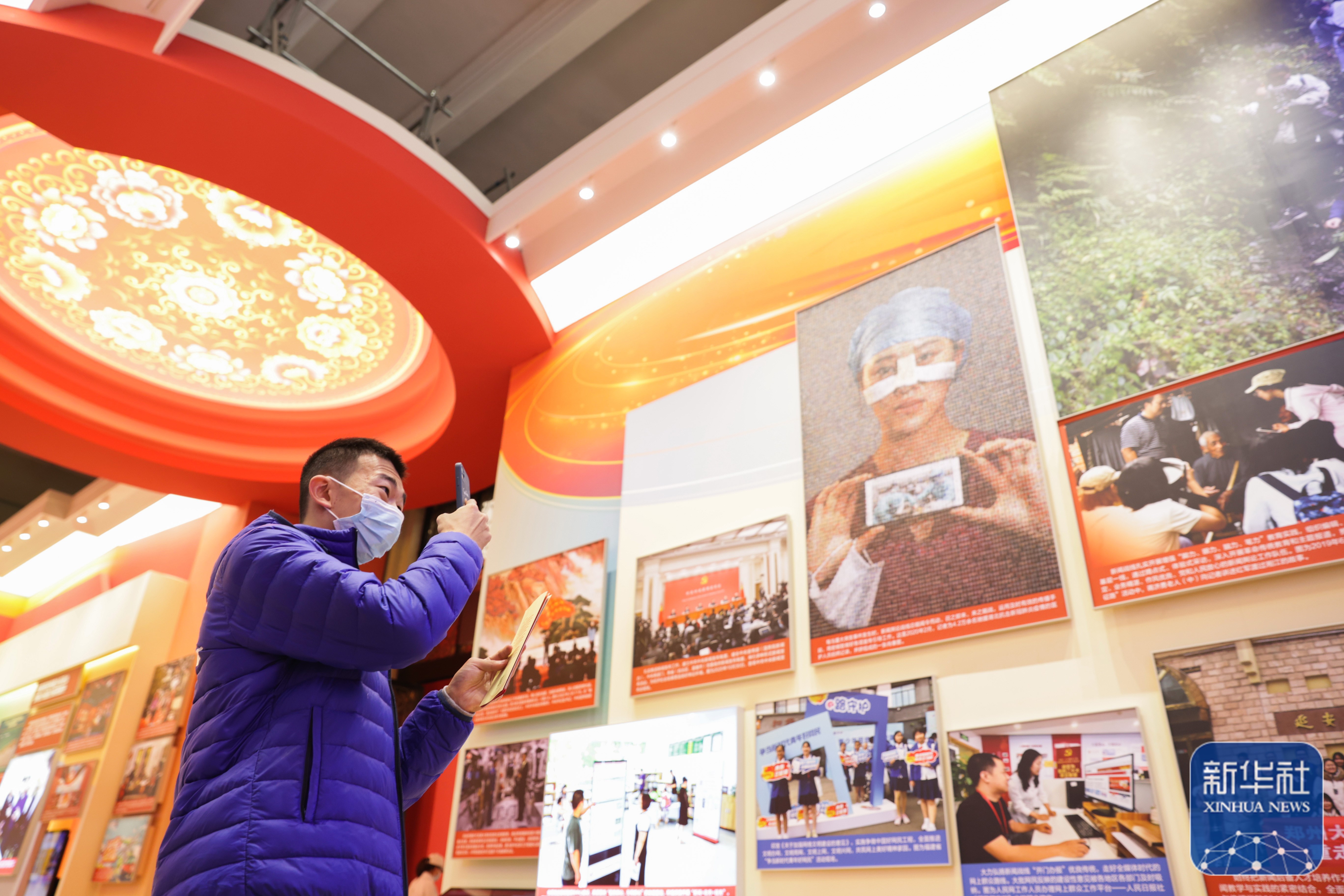 展覽上,一張張圖片生動詮釋黨的創(chuàng)新理論“飛入尋常百姓家”——
