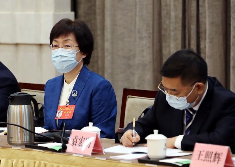 按照中國(guó)共產(chǎn)黨第二十次全國(guó)代表大會(huì)統(tǒng)一安排,陜西省代表團(tuán)10月15日在住地召開全體會(huì)議。圖左為王玉娥代表。