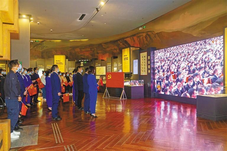10月16日,西安博物院黨員干部群眾一起收看黨的二十大開(kāi)幕會(huì)。記者 戴吉坤攝