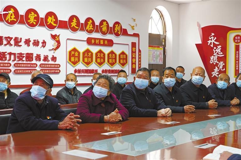 10月16日,延川縣文安驛鎮(zhèn)梁家河村黨員干部群眾在村黨支部集體收看黨的二十大開(kāi)幕會(huì)。記者 王姿頤攝