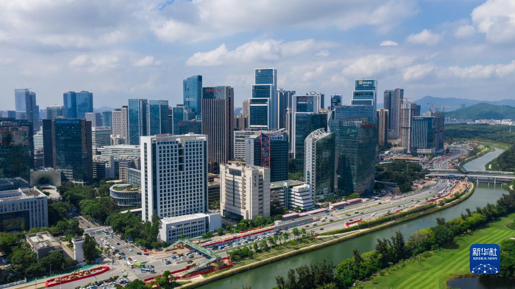 深圳市南山區(qū)大沙河畔的科技園(2020年9月27日攝,無(wú)人機(jī)照片)。新華社記者 毛思倩 攝