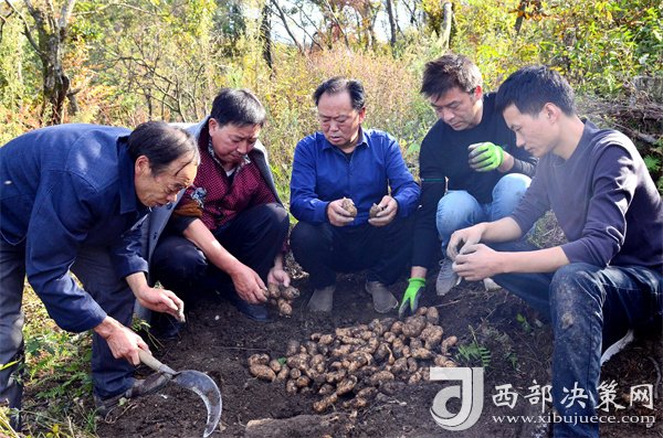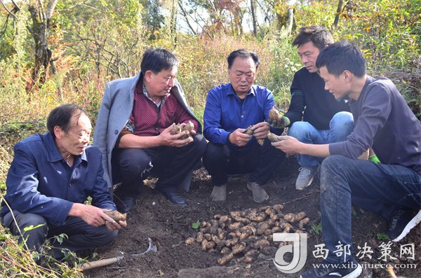 10月18日,寧強(qiáng)縣陽(yáng)平關(guān)鎮(zhèn)伍家壩村第一書(shū)記唐賢斌(右三)正在天麻基地查看天麻的收成等情況。