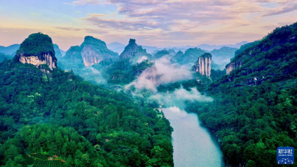 這是福建武夷山九曲溪兩岸的丹霞景觀(2022年6月7日攝,無人機(jī)照片)。新華社記者 姜克紅 攝