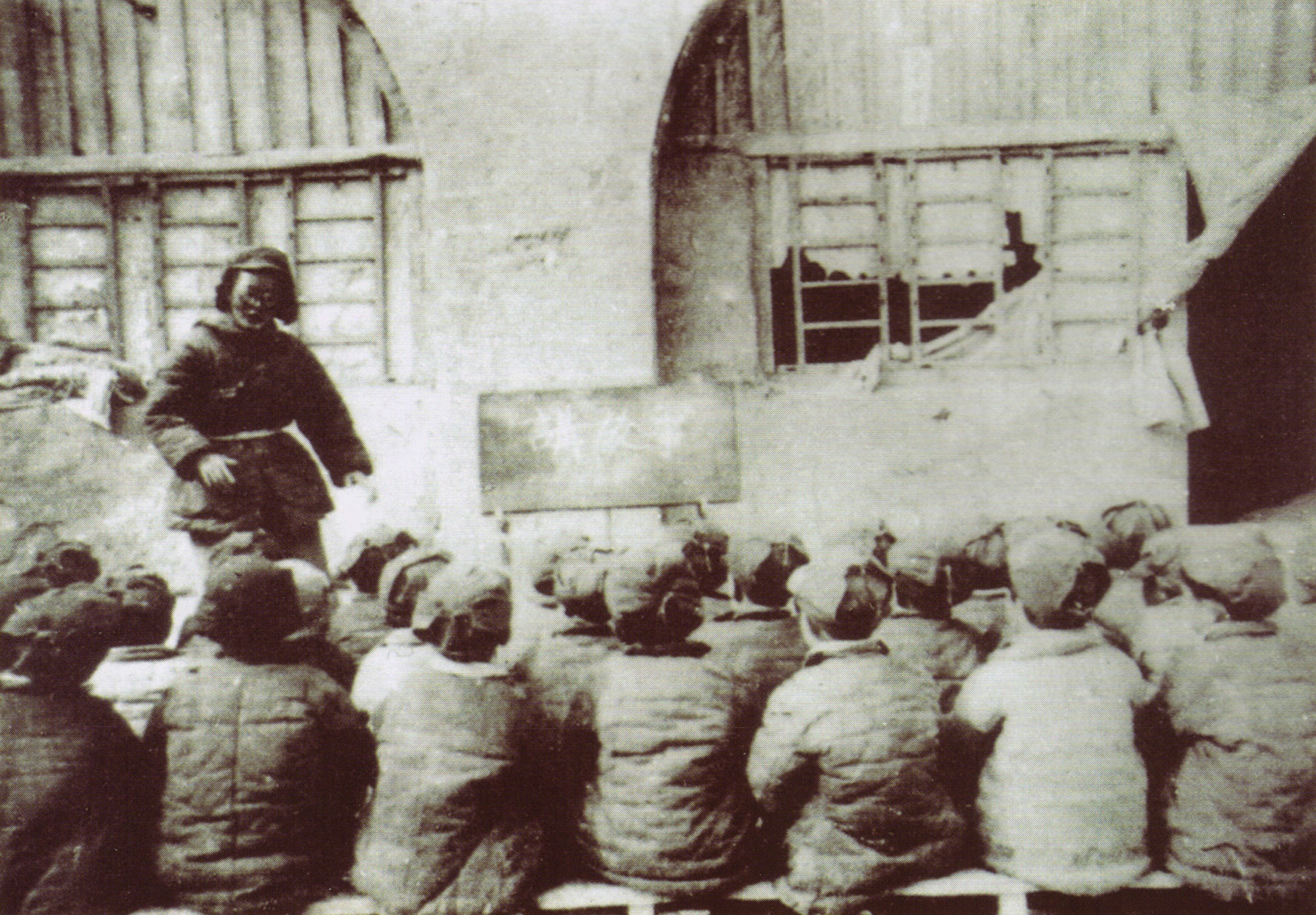 沒有教室宿舍,學(xué)生動手挖窯洞;沒有桌椅,用木板代替;沒有課本,學(xué)校自己編印。曾在延安中學(xué)任教的賈芝老師回憶:“烈日炎炎,孩子們坐在窯洞門前,木板在膝頭,這就是課桌;寒冬臘月,北風(fēng)夾著雪花吹打著窗戶,他們哈著氣,手握著用廢彈殼做成的鋼筆在記筆記。”