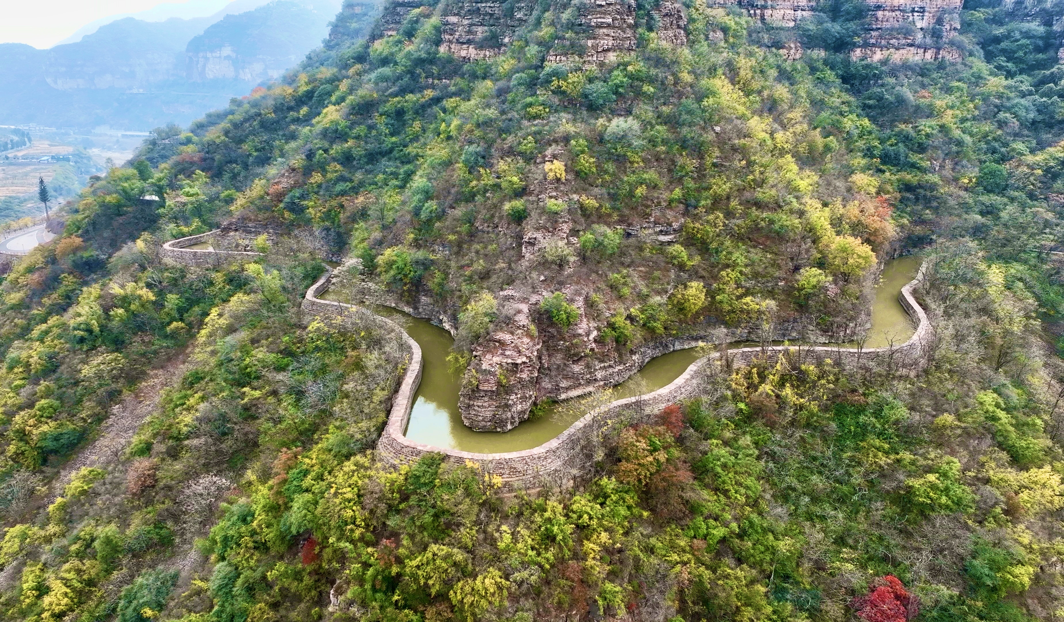 △蜿蜒在太行山腰的紅旗渠。(總臺央視記者程鋮拍攝)