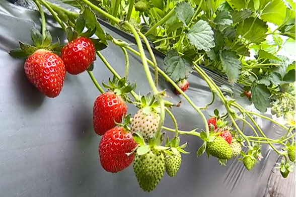 西安高陵區(qū)東張市村農業(yè)觀光采摘園種植的草莓(央廣網發(fā) 西安高陵區(qū)供圖)