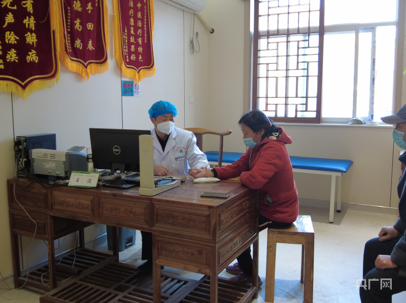 藍(lán)田縣玉山中心衛(wèi)生院內(nèi)醫(yī)生正在為村民問(wèn)診(央廣網(wǎng)見(jiàn)習(xí)記者 侯凱奇 攝)