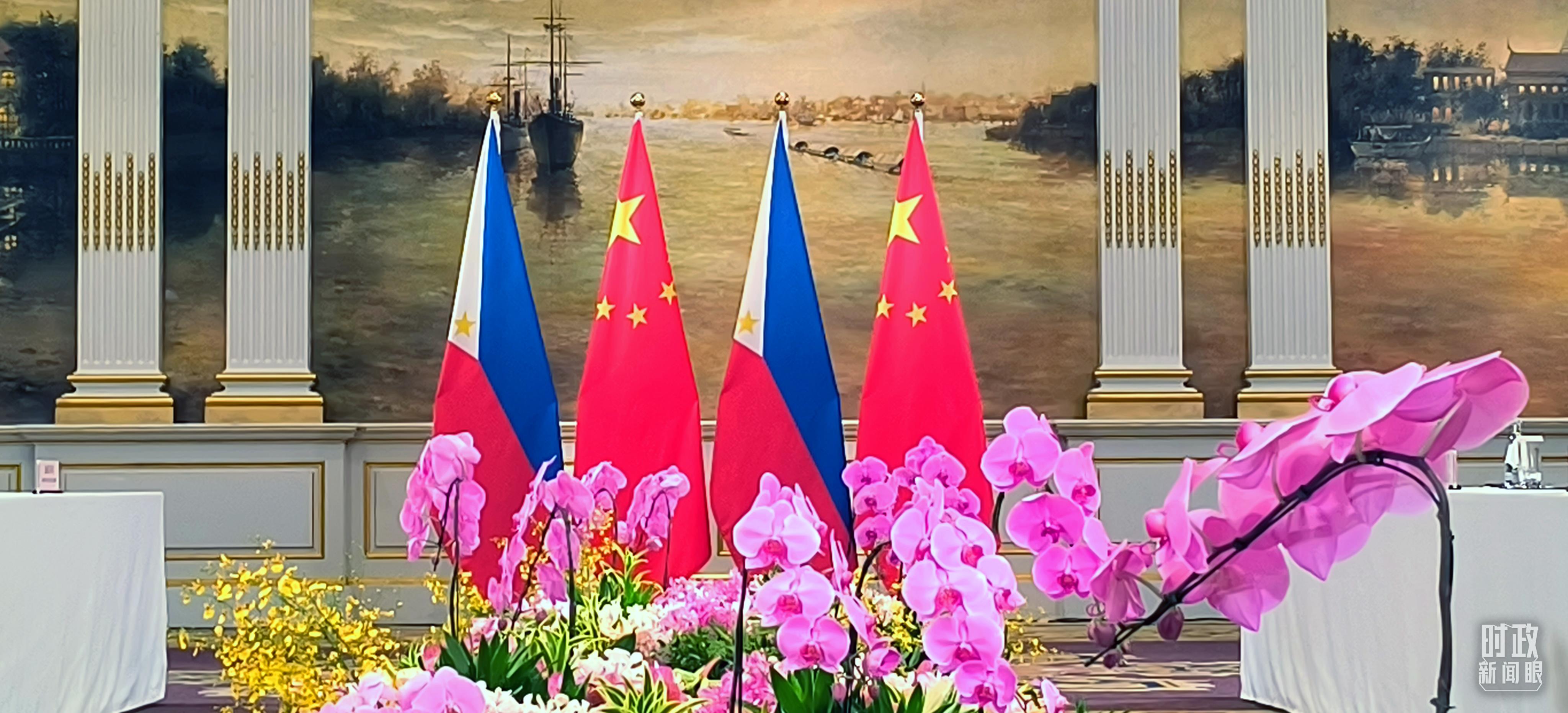 △會(huì)談現(xiàn)場的中菲兩國國旗。(總臺(tái)央視記者范凱拍攝)