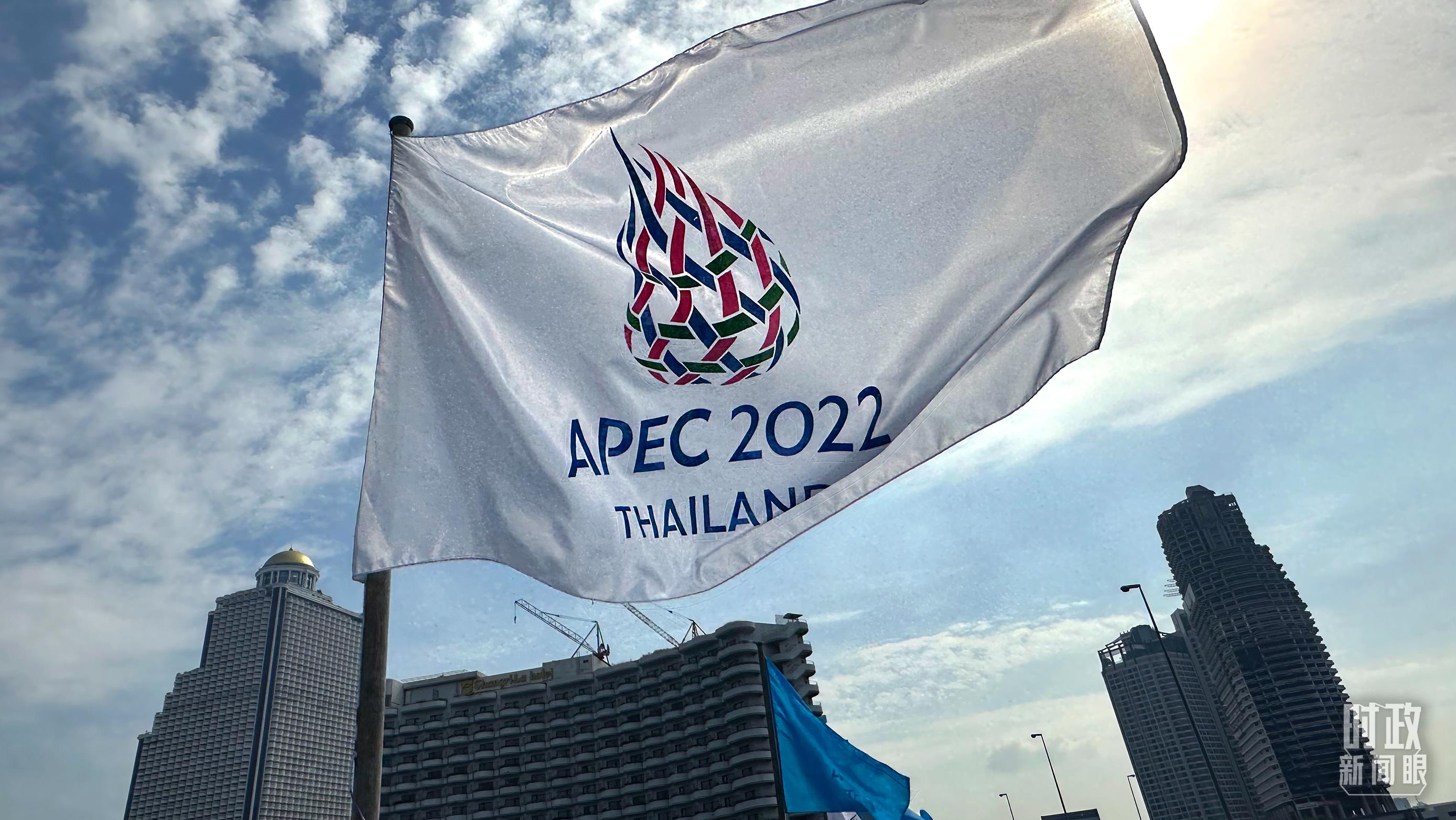 △泰國曼谷,飄揚(yáng)的APEC會(huì)議旗幟。(總臺(tái)央視記者范一鳴拍攝)