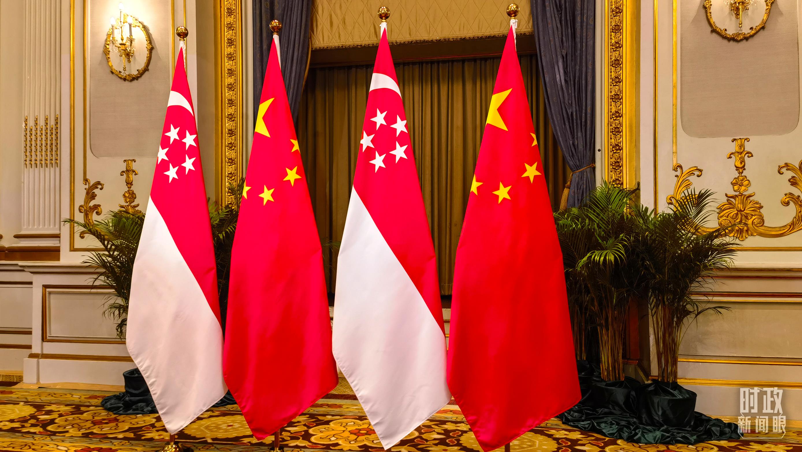 △會(huì)見現(xiàn)場的中新兩國國旗。(總臺(tái)國廣記者吳倩拍攝)